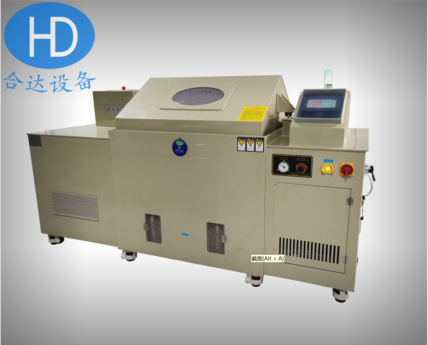 本设备主要由箱体结构、盐水喷雾系统、空气循环加热系统、加湿系统、制冷及除湿系统及测控系统组成。